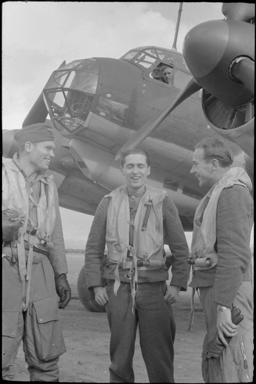 Un équipage de bombardier Junkers Ju-88 devant son appareil, il pourrait s'agir du terrain d'aviation de Eleusis.