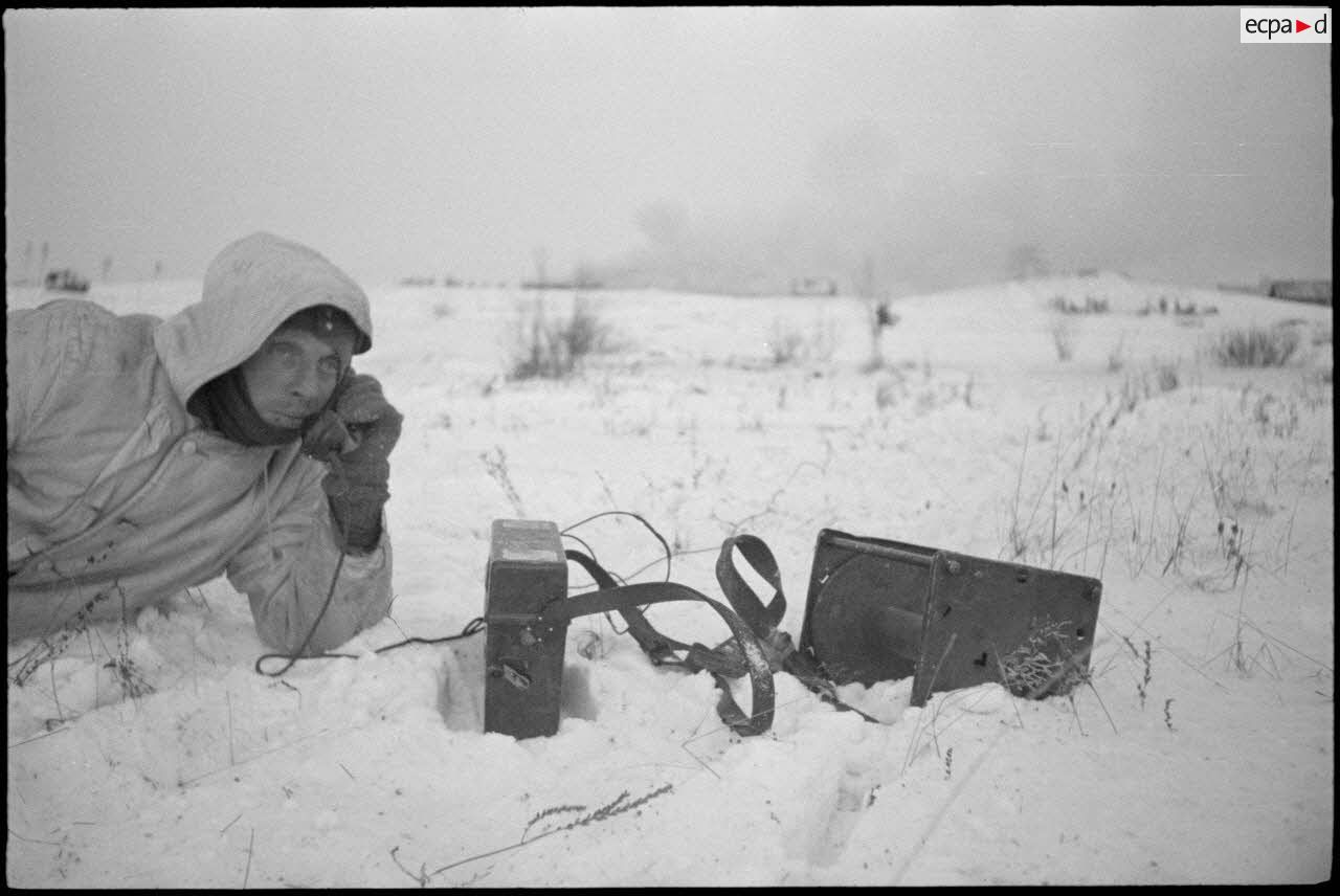 Avant un assaut, alors que les servants d'une batterie de mortiers installent une position, les équipages de Nashorn du schwere Panzerjäger-Abteilung 519 patientent à l'abri d'une meule de foin. Au sein d'un véhicule de commandement de l'Abteilung 519, des officiers étudient les plans de l'attaque. Des fantassins discutent et un tankiste de l'Abteilung 519, on reconnaît les pattes de col du tankiste. A proximité d'une isba, le reporter photographie un poste émetteur installé sur un traîneau et une femme. L'équipage du Nashorn (Sd.kfz.164) baptisé "Berlin" s'entretient avec le lieutenant de réserve (Oberleutnant der Reserve) Stehler (PK697 F955 L22 et L23). Un semi-chenillé sanitaire (Sd.Kfz.251/8) progresse sur une route. Un canon antichar de 7,5 cm Pak 40. A l'intérieur d'une isba, le lieutenant (Oberleutnant) Albert Ernst, commandant la 1ère compagnie du schwere Panzerjäger-Abteilung 519 est au téléphone en présence du lieutenant Stehler. Ce dernier quitte les lieux à bord d'un side-car BMW (R 75 ?).