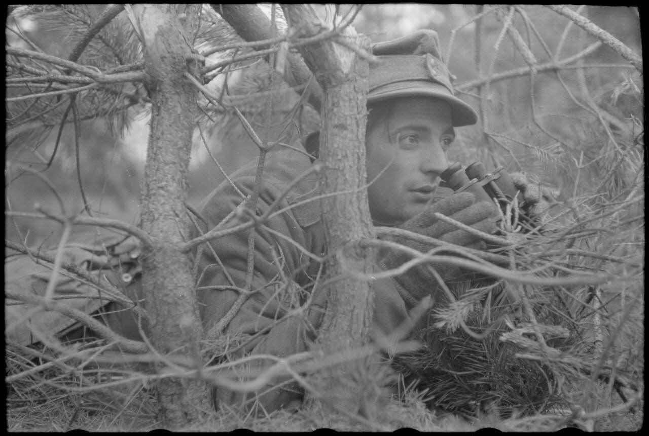 Un officier et un caporal-chef d'un régiment de chasseurs (Jäger) sont décorés de la croix de fer. Le reporter reste aux côtés des fantassins qui, à l'abri de leur tranchée, défendent les lignes allemandes. Sur le parapet de la tranchée, on remarque une mitrailleuse MG-42, ainsi qu'une autre sur un affût lourd.