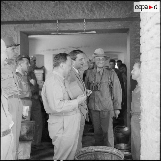 Visite des cuisines d'un poste d'une unité de la 20e DI dans le djebel Bou Zegza.