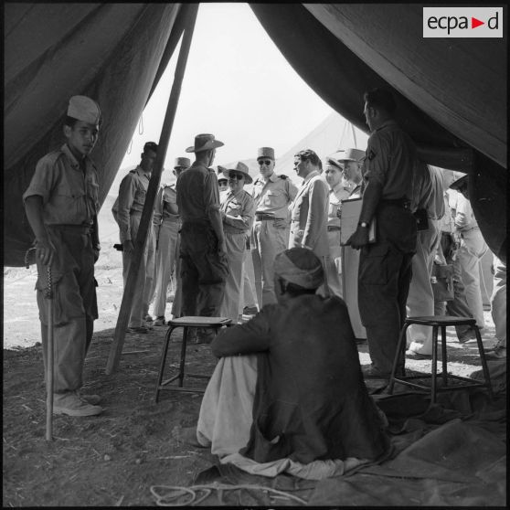 Le général Simon expliquant les opérations aux autorités civiles et militaires.