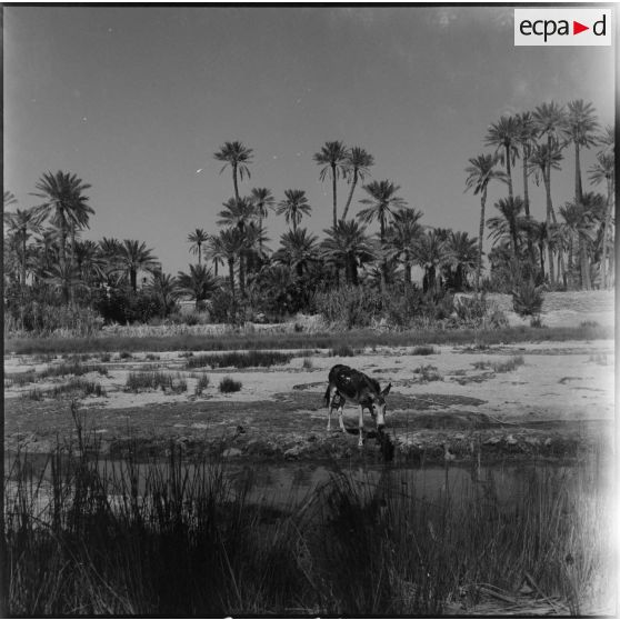 Un mulet s'abreuvant dans l'oued Béchar.