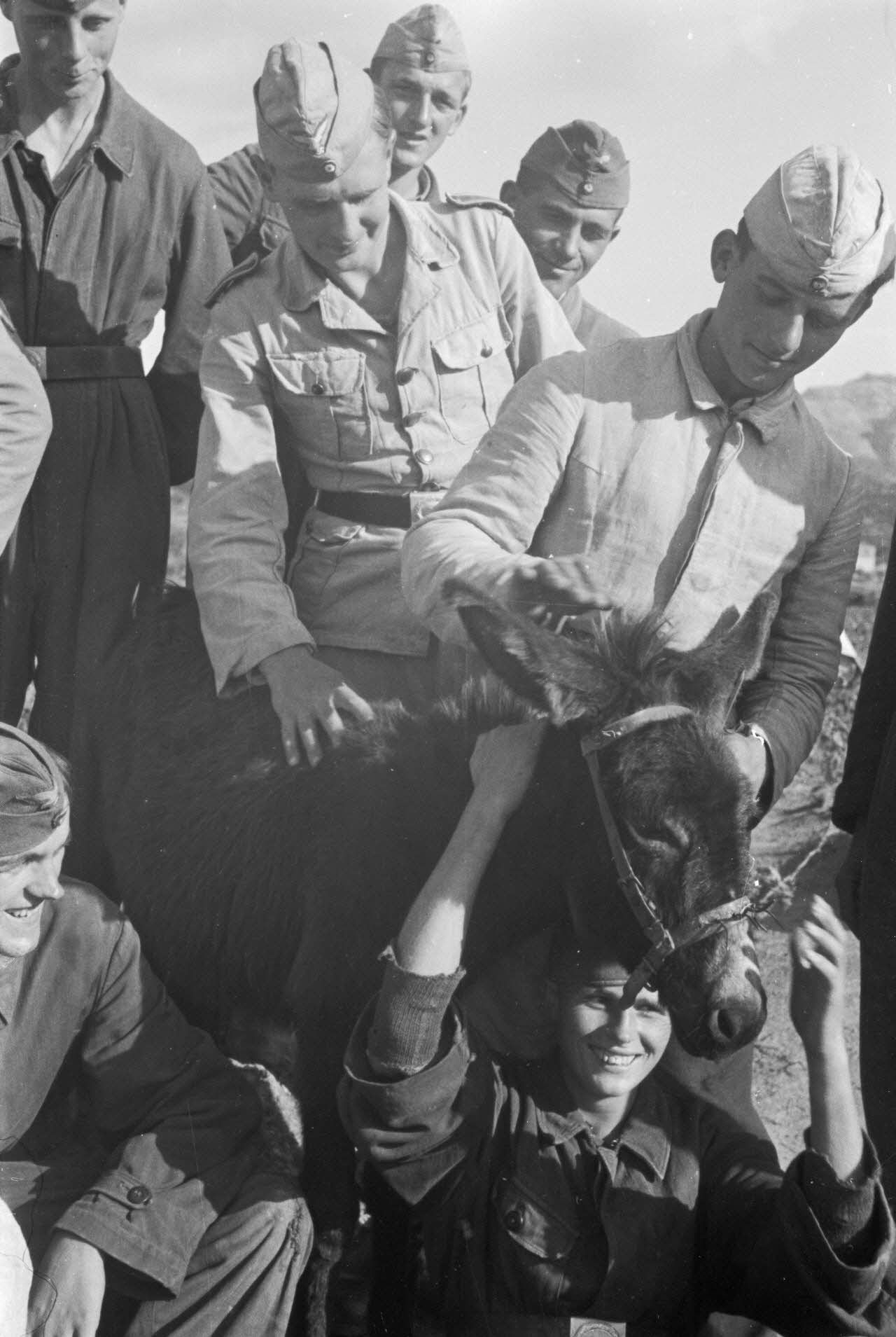Des ouvriers crétois sont employés pour des aménagements autour de la batterie de FlaK.