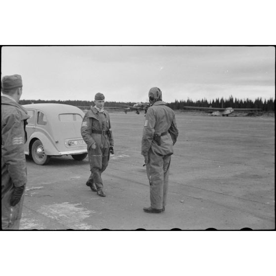 Manoeuvres du 8./LLG 1 (Lulftlandegeschwader 1) sur l'aérodrome de Banak (secteur de Trondheim), en présence de l'amiral Otto Ciliax.