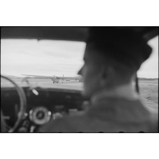 A Banak en Norvège, lors de de manœuvres, un capitaine du 8./LLG 1 (Lulftlandegeschwader 1) observe le départ des planeurs DFS-230 et de leur équipage.