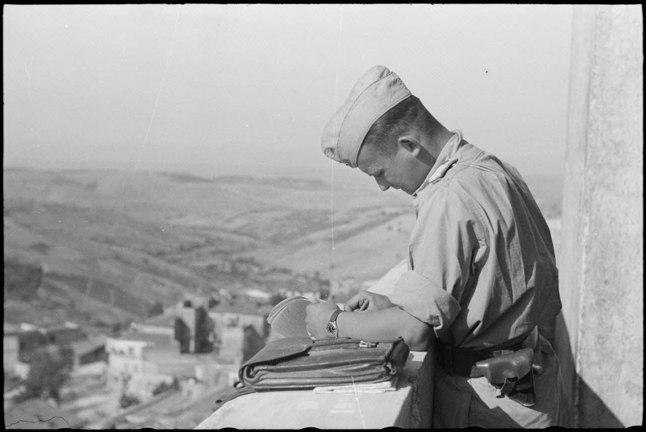 A Monterotondo, le commandant Walter Gericke du 6e régiment parachutiste allemand (II./Fallschirmjäger.Regiment.6) sur les hauteurs du palais Orsini.