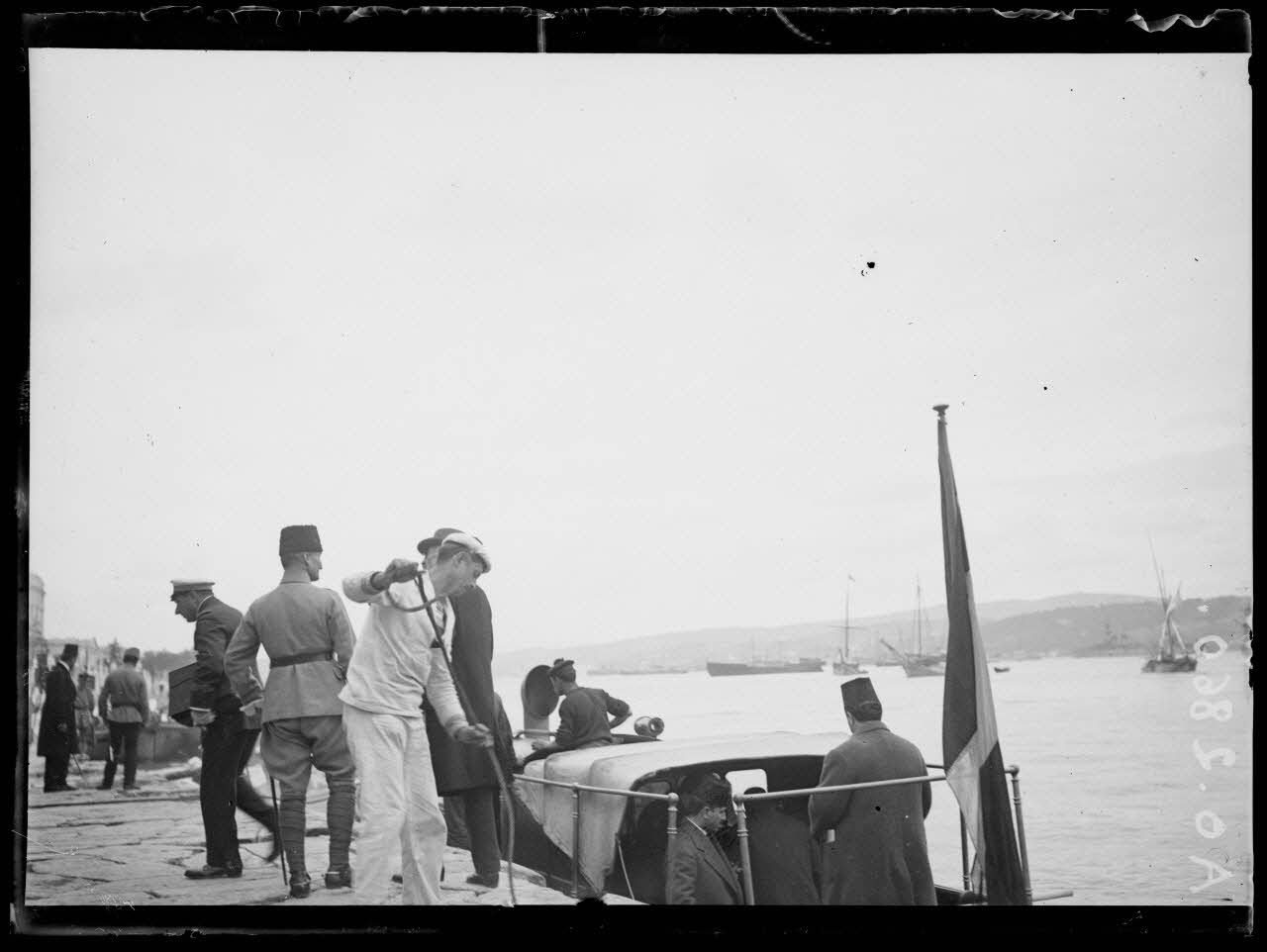 [Un marin amarre le bateau d'une autorité civile au port de Constantinople.]
