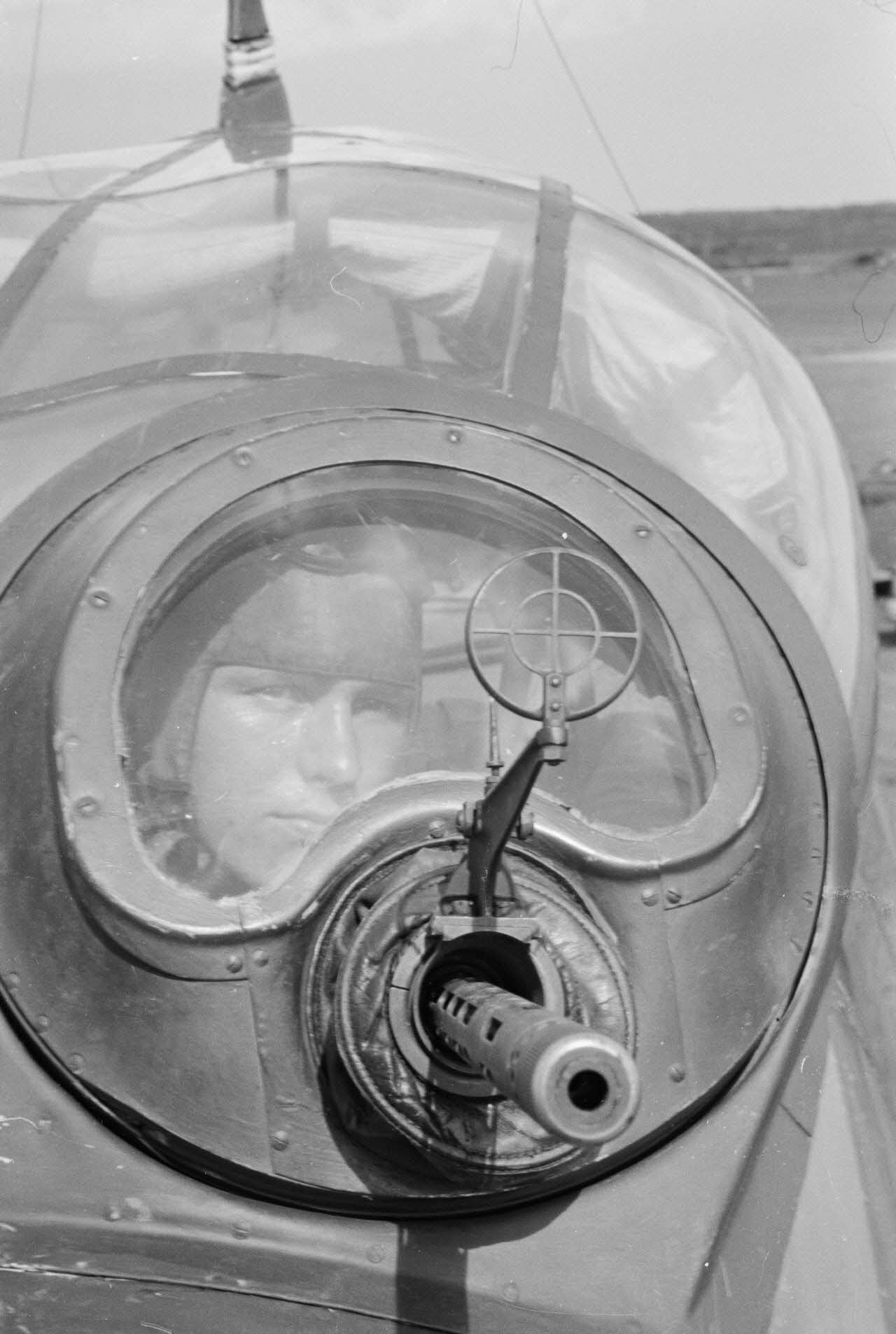 Un mitrailleur au sein d'un bombardier Junkers Ju-88 du Kampfeschwader 3 Blitz.