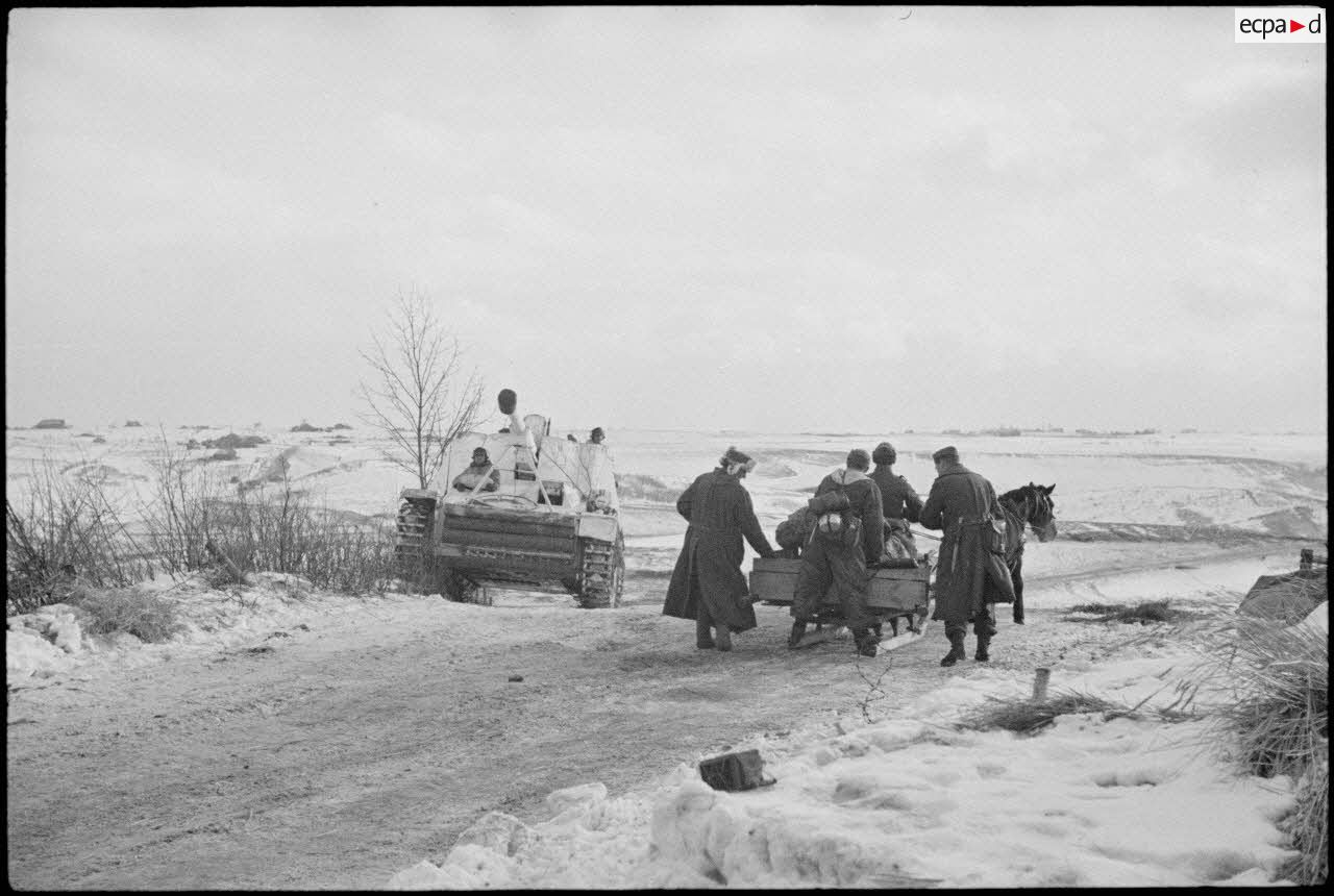 Dans le secteur de Vitebsk (Witebsk), des Nashorn du schwere Panzer-Jäger Abteilung 519 et les premières lignes défensives allemandes.