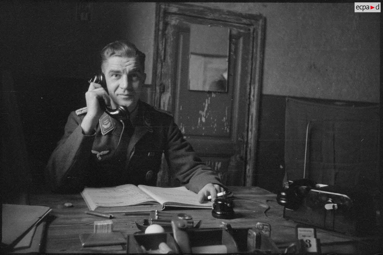Un Oberleutnant de la Luftwaffe, peut-être de la 4e division d'infanterie de l'armée de l'Air allemande (4.Luft-Feld-Division).