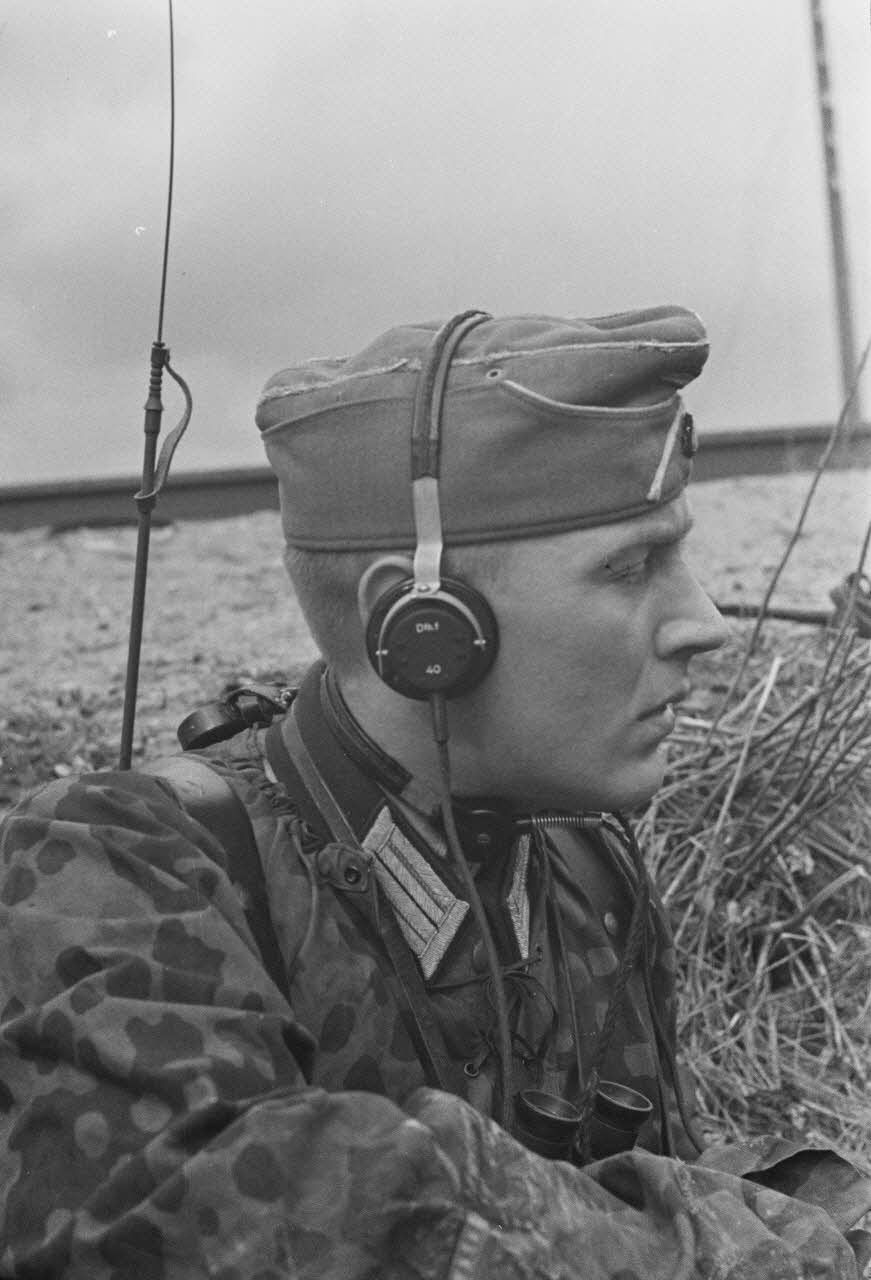 Un officier d'infanterie équipé du poste émetteur-récepteur (Feldfunksprecher b1 Feldfu.b1).