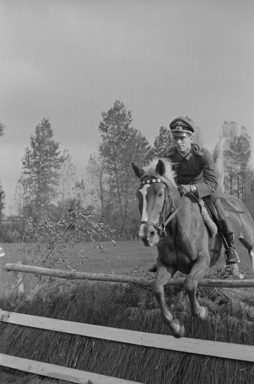 Visite chez le commandant Rudolf Lippert et cavaliers allemands dans un parcours d'obstacles.