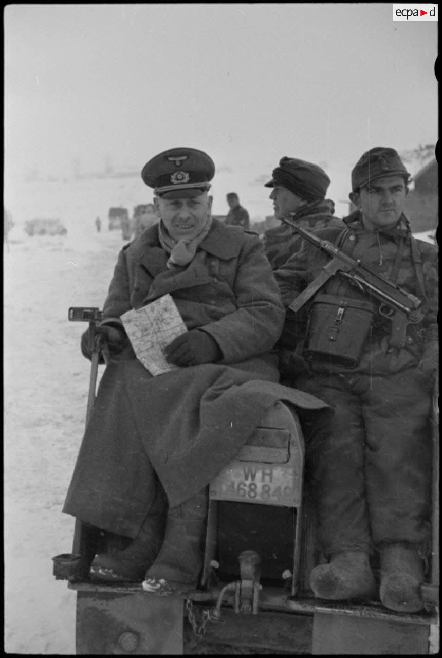 Discussion entre officiers, au milieu le Major Josef-Georg Mulzer.