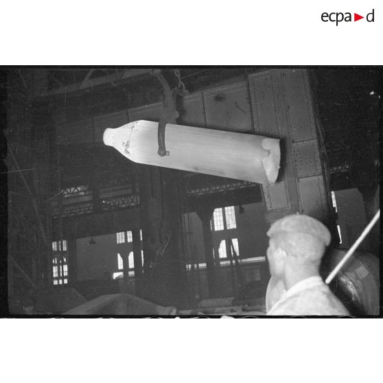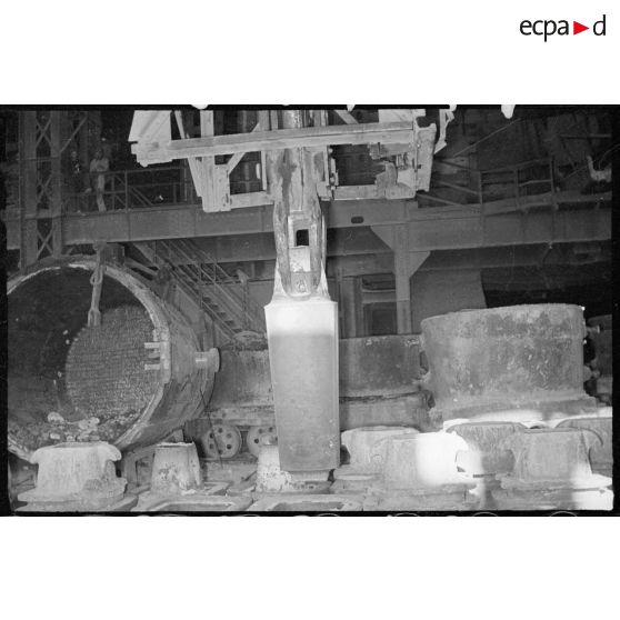 Les activités dans une usine d'armement du Creusot où sont fondus bombes et canons.