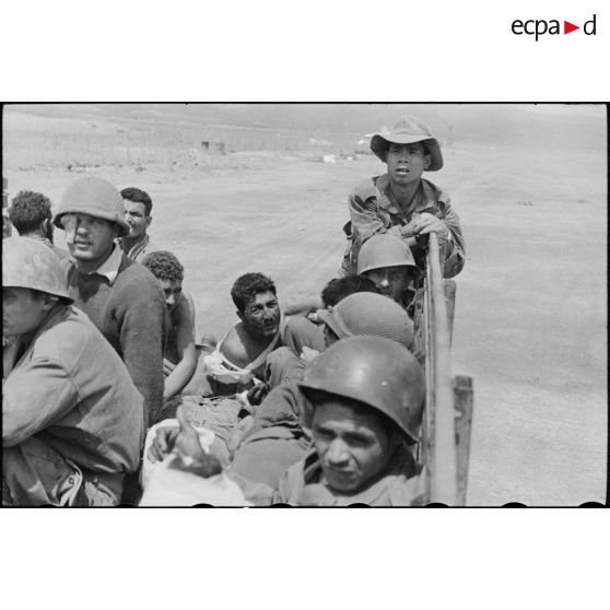 Transport de blessés dans un camion jusqu'à la piste d'aviation du camp retranché de Diên Biên Phu.