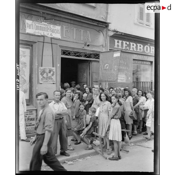 Des Niçois se rendent à la permanence du parti communiste français sorti de la clandestinité.
