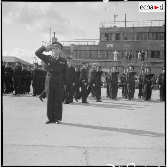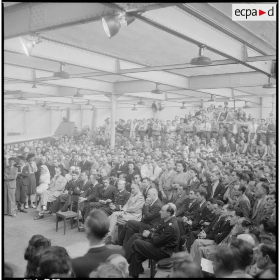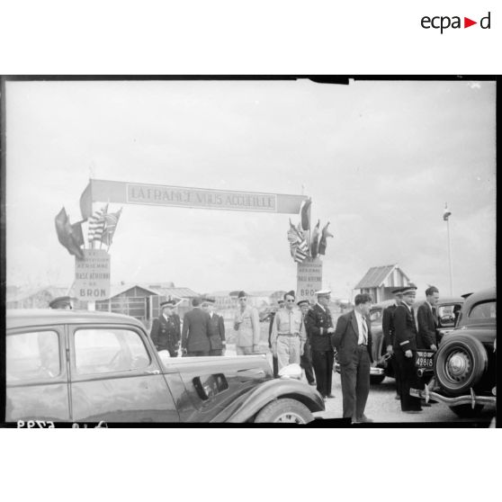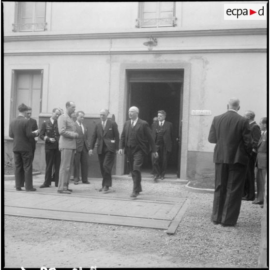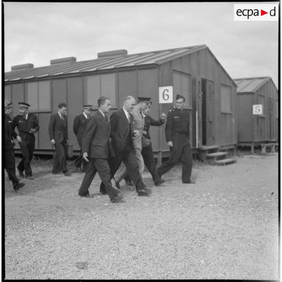 Visite ministérielle à Arsenal de l'aéronautique et au camp de réfugiés et rapatriés de Bron.