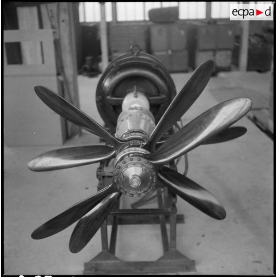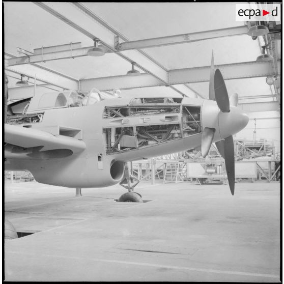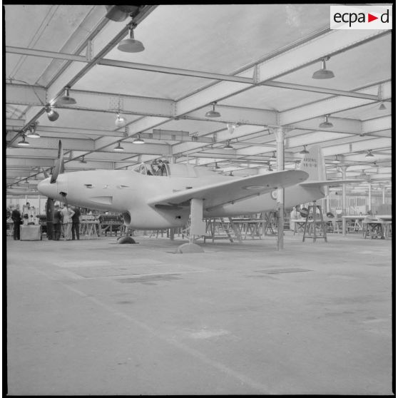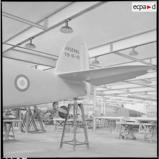 Le prototype d'un chasseur-bombardier Arsenal VB10. Ses deux moteurs sont logés l'un à l'arrière, l'autre dans le fuselage. Egalement doté d'hélices co-axiales contrarotatives, il fut conçu pendant l'Occupation par Michel Vermisse, ingénieur général de l'Air responsable des recherches à l'Arsenal de l'aéronautique, et réalisé à la Libération.