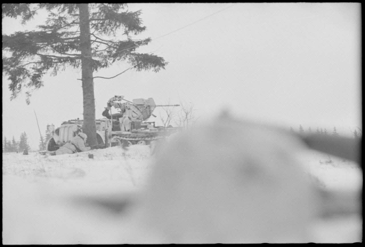 Deux semi-chenillés Sd.kfz.10/4, pointent leurs canons de 2 cm Flak 38 vers le danger.