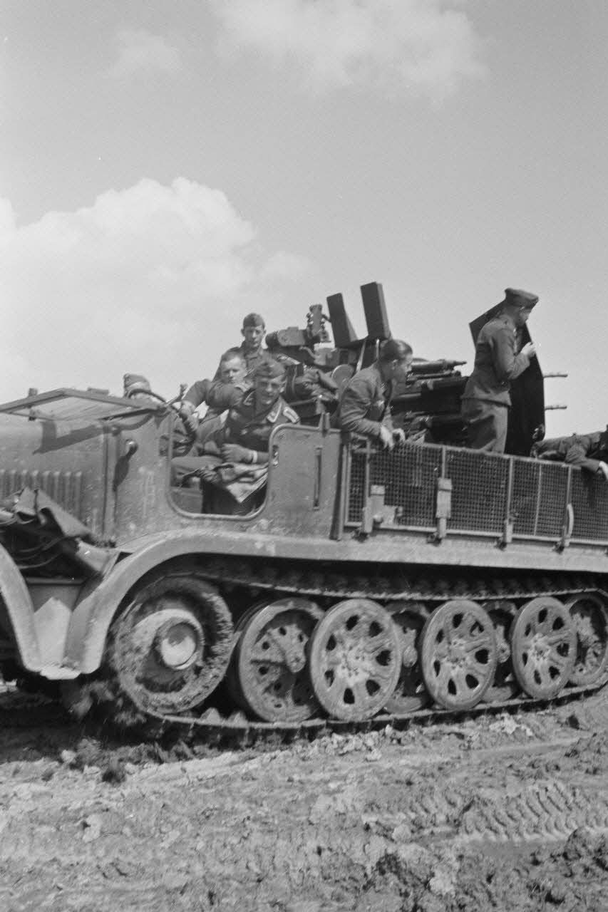 Un semi-chenillé Sd.kfz.7/1 armé de 2 cm FlaKvierling 38 et son équipage du Leichte Flak Abteilung 71 (11.Panzer-Division).