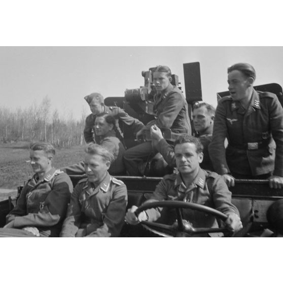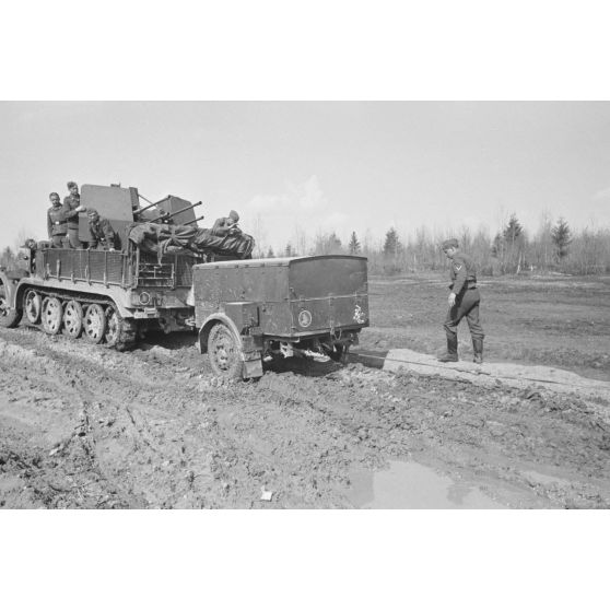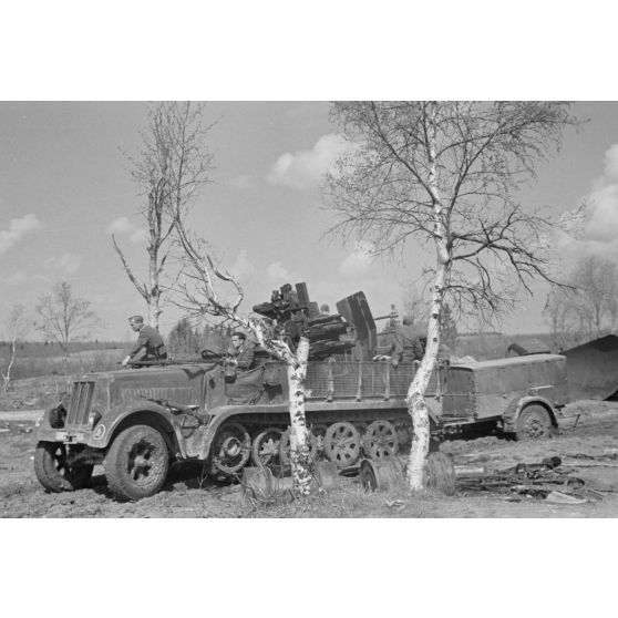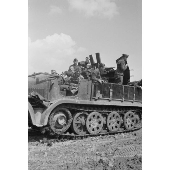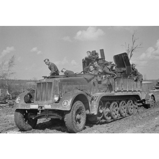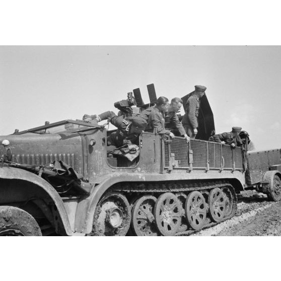Un semi-chenillé Sd.kfz.7/1 armé de 2 cm FlaKvierling 38 et son équipage du Leichte Flak Abteilung 71 (11.Panzer-Division).