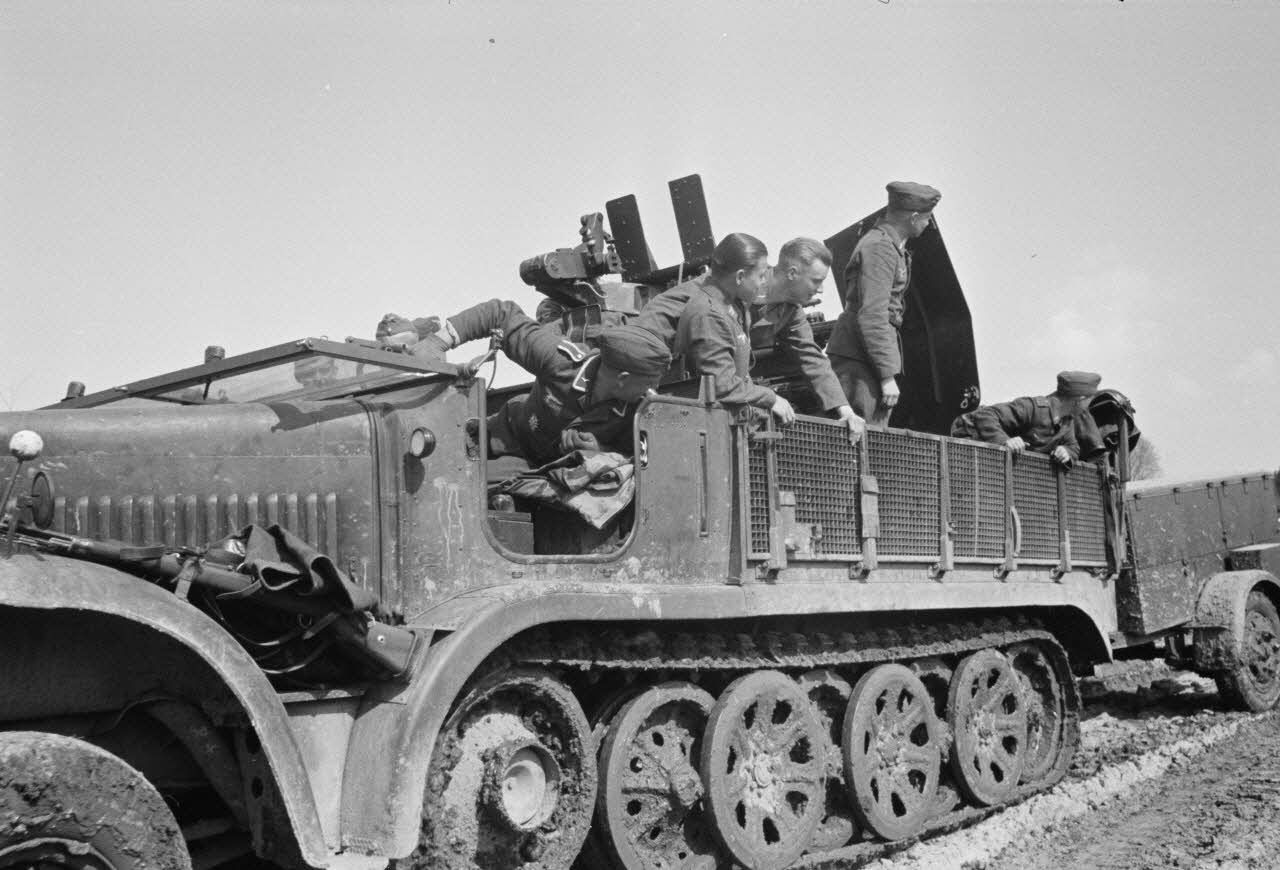 Un semi-chenillé Sd.kfz.7/1 armé de 2 cm FlaKvierling 38 et son équipage du Leichte Flak Abteilung 71 (11.Panzer-Division).