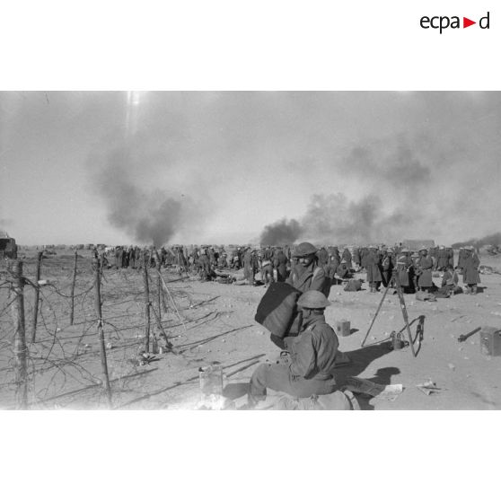 En Libyen, dans le secteur de Sidi Rezegh, lors de l'opération Crusader, le général Rommel donne des ordres au milieu de véhicules en flamme et près d'un camp de prisonniers et d'un hôpital de campagne britannique.