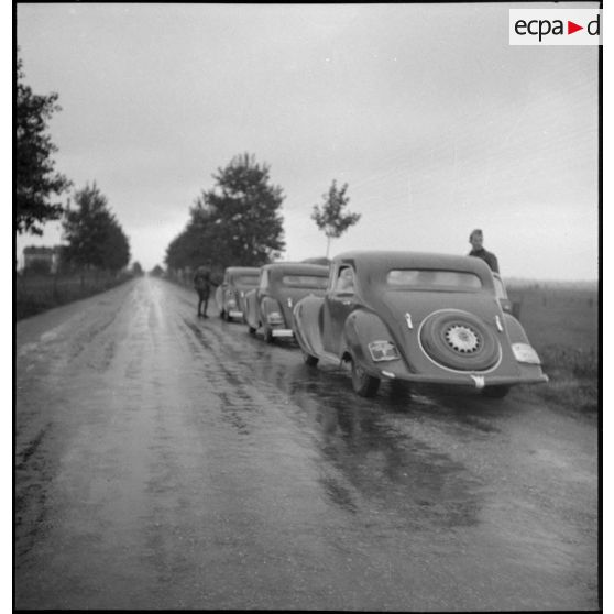 Des Panhard Dynamic du grand quartier général sont garées photographiées en plan général.