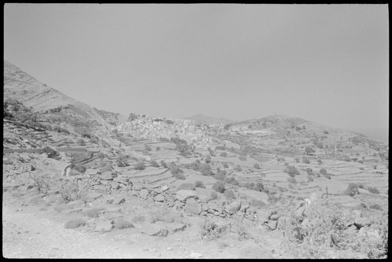 Le village de Apeiranthos entouré par des cultures en terrasse sur l'île de Naxos.