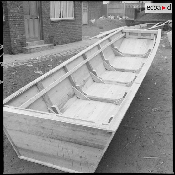 Plan moyen d'une barque à fond plat du 10e RG construite pour un exercice de franchissement.