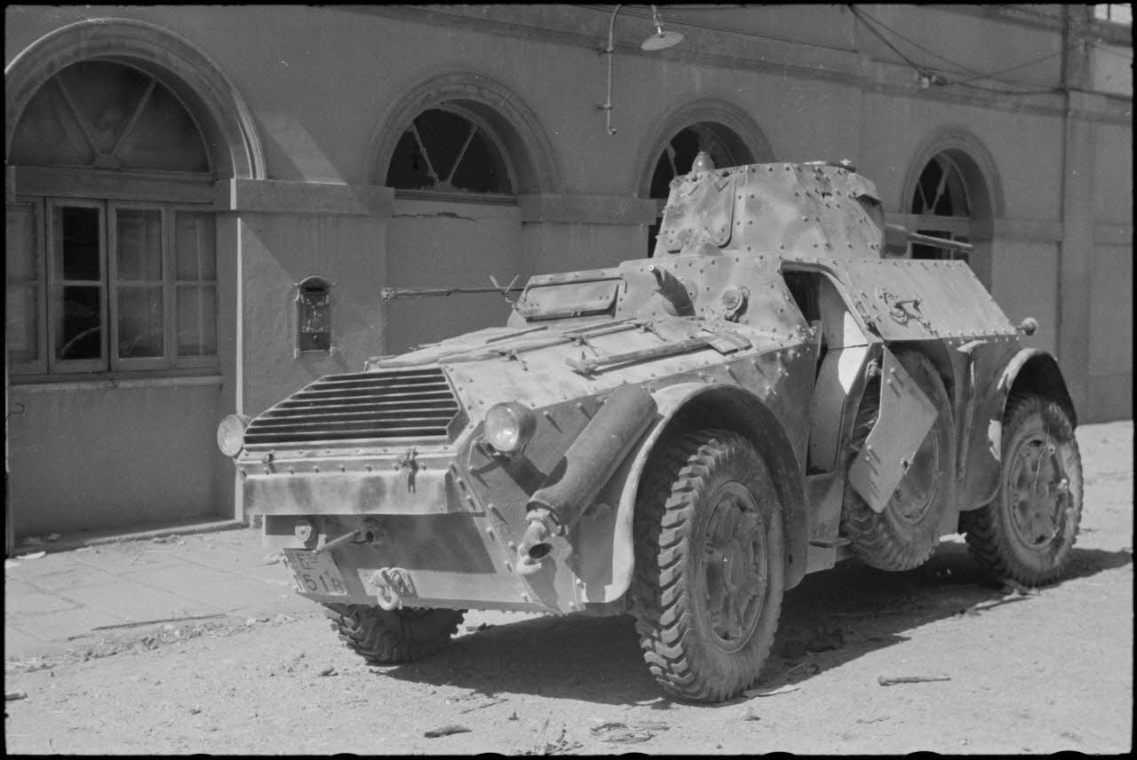Une automitrailleuse italienne AB-41 abandonnée de la gare de Monterotondo (au nord-est de Rome) suite aux combats entre les parachutistes allemands et les défenseurs italiens.