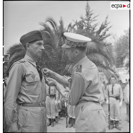 Prise d'armes à l'état-major de la 5e région aérienne (RA) à Alger et remise de décorations.