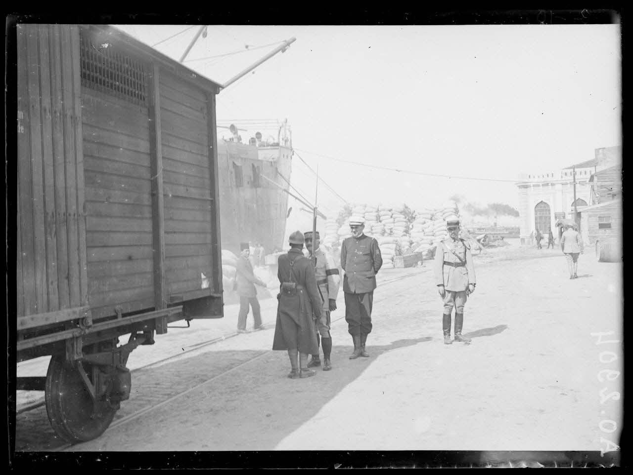 [Une autorité militaire s'entretient avec un soldat, sur le port de Constantinople.]