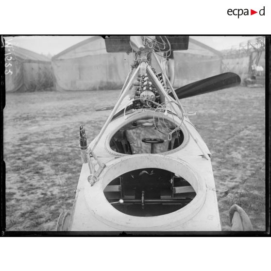 Le cockpit d'un avion de combat allemand LVG stationné sur l'aérodrome de Saint-Cyr l'Ecole.