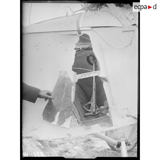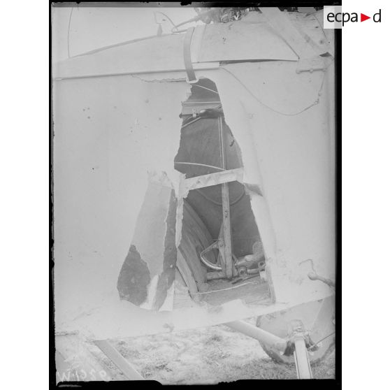 Le cockpit détruit d'un avion de combat allemand de type LVG.
