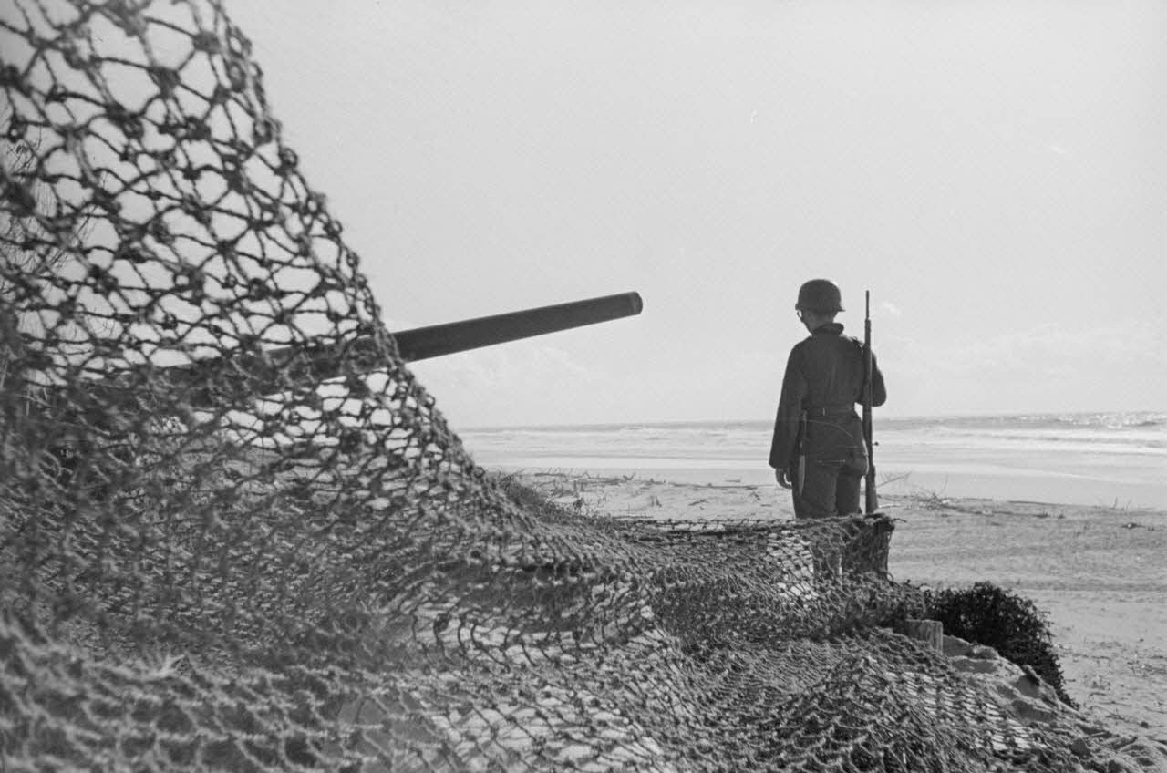Le phare de la Courbe est utilisé par l'artillerie allemande comme un poste d'observation et comme un poste de direction de tir pour une batterie positionnée non loin du phare. Les canons de 15 cm sont mis en batterie dans des encuvements et camouflés par des filets. Un marin allemand discute avec un marin italien de la "Regia Marina".
