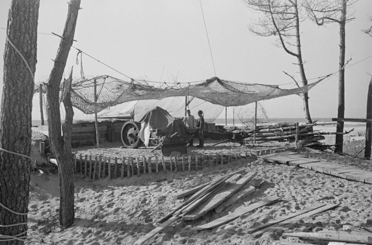 Le phare de la Courbe est utilisé par l'artillerie allemande comme un poste d'observation et comme un poste de direction de tir pour une batterie positionnée non loin du phare. Les canons de 15 cm sont mis en batterie dans des encuvements et camouflés par des filets. Un marin allemand discute avec un marin italien de la "Regia Marina".