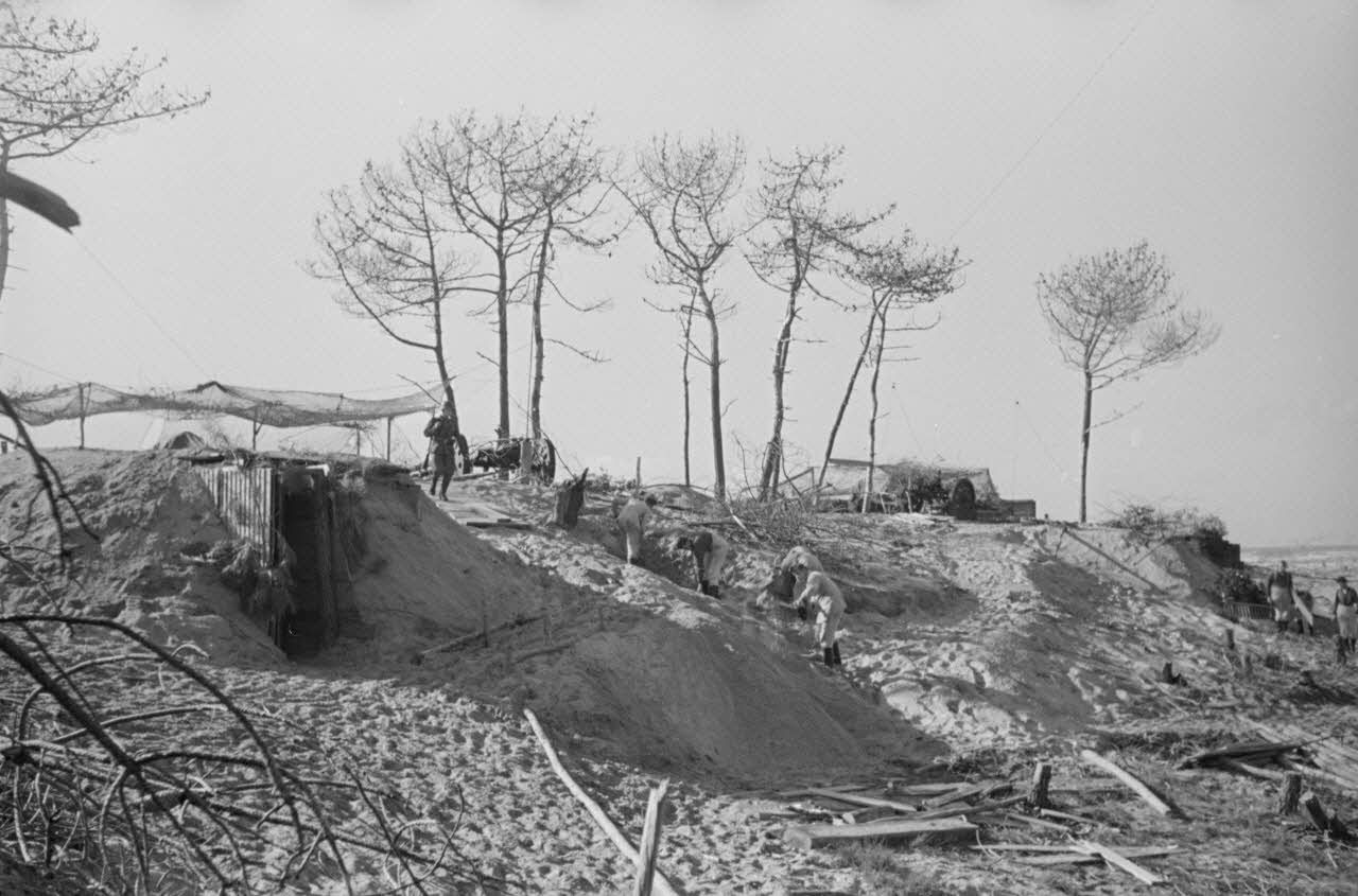 Le phare de la Courbe est utilisé par l'artillerie allemande comme un poste d'observation et comme un poste de direction de tir pour une batterie positionnée non loin du phare. Les canons de 15 cm sont mis en batterie dans des encuvements et camouflés par des filets. Un marin allemand discute avec un marin italien de la "Regia Marina".