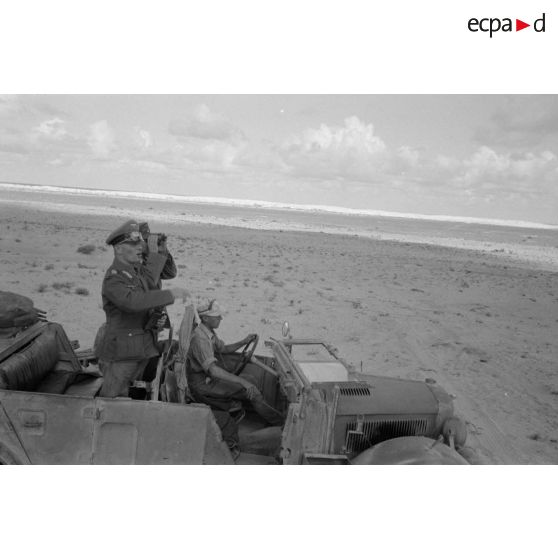 Le maréchal (Generalfeldmarschall) Erwin Rommel donne des ordres pendant la bataille d'El Alamein.