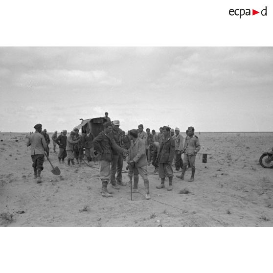 Inspection d'une position défensive tenue par des unités de l'Axe par les généraux Ludwig Crüwell et Fedele De Giorgis.