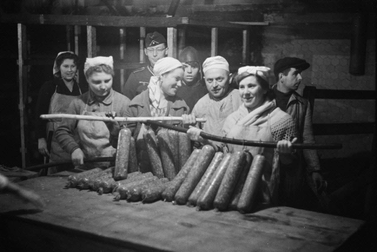 Ouvrières soviétiques d'une boucherie au service de l'armée allemande.