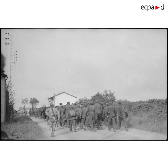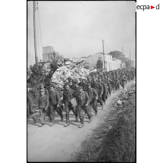 Front de l'Atlantique : le 13e régiment de dragons (13e RD) dans la poche de Royan ; prisonniers de guerre allemands.