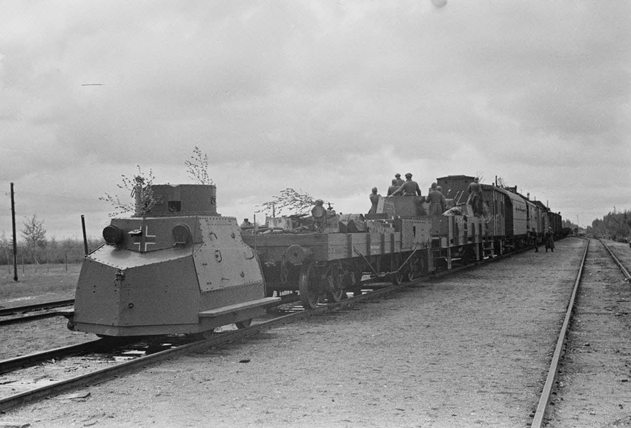 Des unités de la Luftwaffe partent au contact des partisans avec le soutien des canons et des mitrailleuses du train fortifié (blindé). Un canon de 2 cm FlaK sous casemate (ou blindé), une mitrailleuse jumelée Zwillingslafette 36 et un canon antichar de 47 mm Böhler M35. Les éléments de l'armée de terre débarquent du train pour s'opposer aux unités de partisans. Ces fantassins sont équipés de mitrailleuses MG-34 ou de fusils Mauser 98k. Un camion Bussing NAG 650 des chemins de fer allemands (Deutche Reichbahn) est transformé en draisine immatriculé DR-60250.