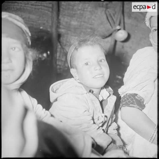 Portrait d'enfants à l'intérieur d'une khaïma.