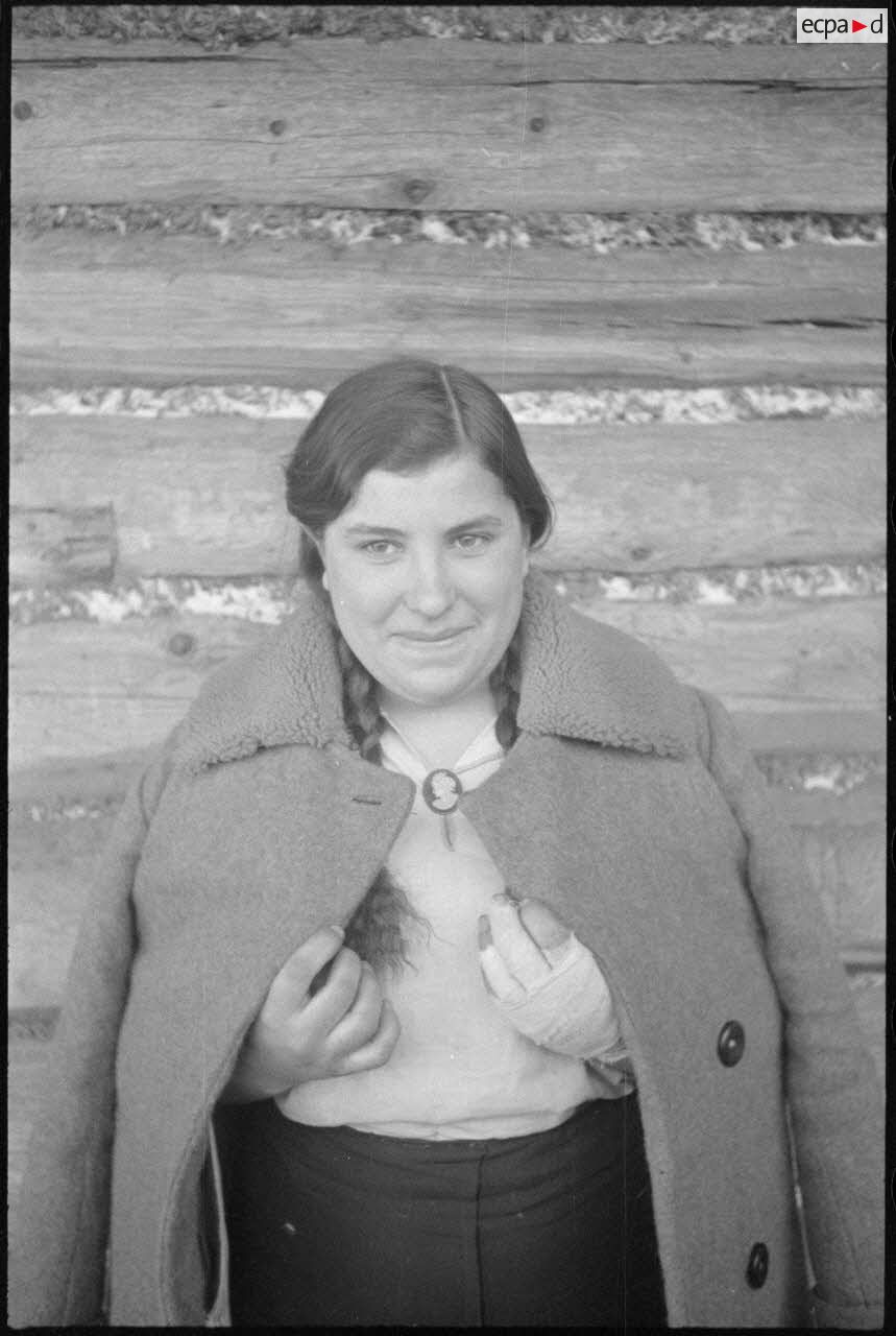 Une habitante du village a été soignée, elle pose devant une isba.