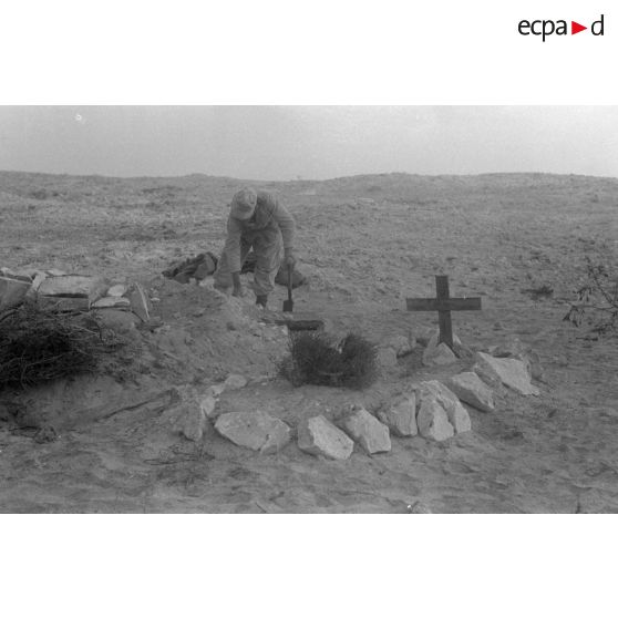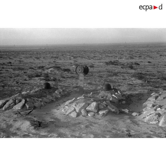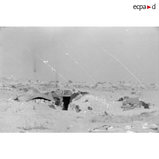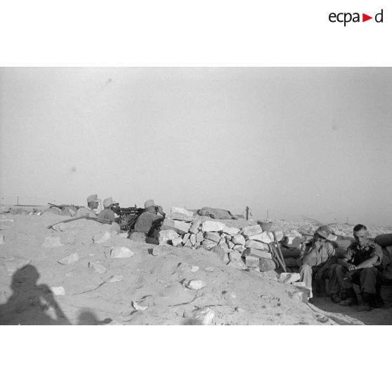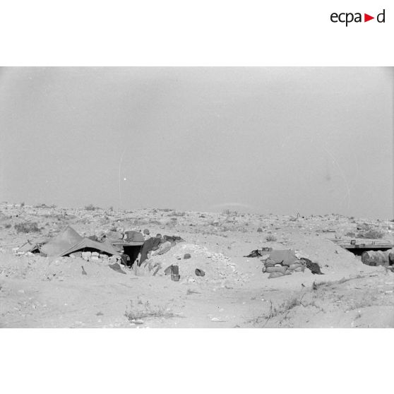 Une position défensive allemande occupée par de l'infanterie et une unité de FlaK dans le secteur côtier d'El-Alamein.