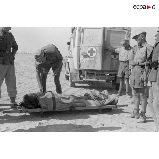 Embarquement d'un blessé ou d'un malade dans un camion sanitaire Kfz-15 ou Kfz-16.