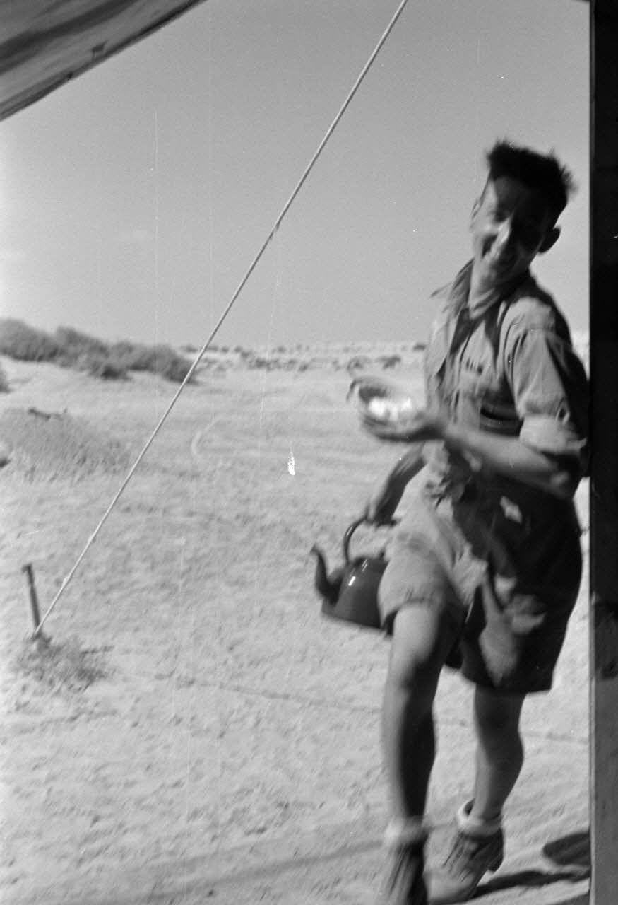 Une ordonnance apporte le petit-déjeuner puis entretien avec un bédouin (Araber dans la légende d’origine). Une cuisine improvisée dans les dunes.