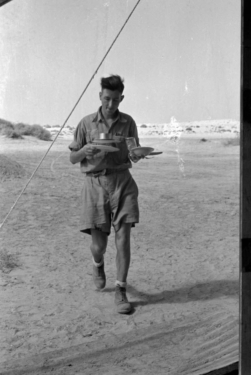 Une ordonnance apporte le petit-déjeuner puis entretien avec un bédouin (Araber dans la légende d’origine). Une cuisine improvisée dans les dunes.