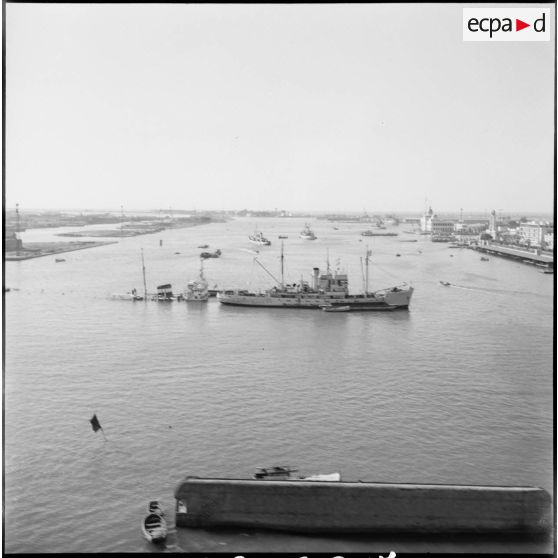 Une partie de la flotte franco-britannique dans l'avant-port de Port-Saïd.